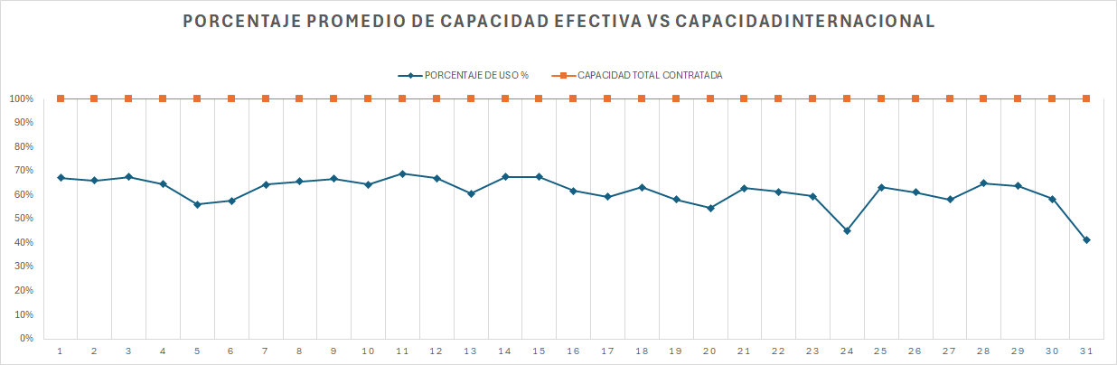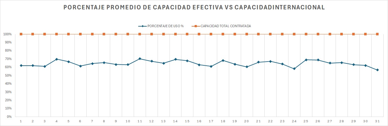 capacidad efectiva UTILIZADA vs capacidad internacional CONTRATADA